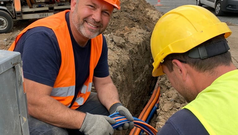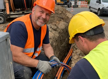 Fachgerechte Verlegung von Glasfaserkabeln mit modernster Technik und erfahrenen Teams.